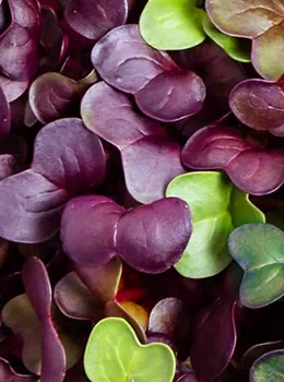 Лилава репичка, репичка корал, рукола, горчица и червена салата.